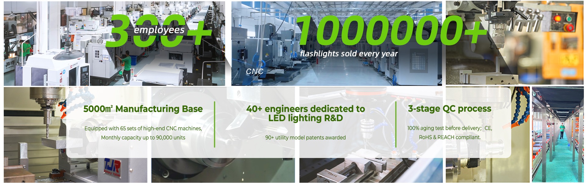 Shenzhen City Jinba Technology Co., Ltd., established in 2010, is a professional manufacturer specializing in the R&D, production, and sales of LED flashlights, LED headlamps, diving lights, bike lights, and customized lighting solutions.